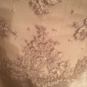 NWT - Pale pink strapless Teri Jon dress. Has lace bodice with beading and a layered silk skirt. Comes with matching wrap.