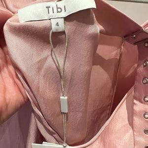 Great looking Tibi "Mendini" twill v-neck blouse. Deep v-neck in back with "belt buckle" closure and silver hardware. Brand new with tags.