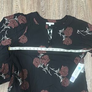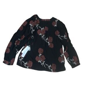 Pale sky stitch fix black embroidered blouse with burgandy and cream floral pattern. Tassel tie neck sz L measurements in pics. No flaws new