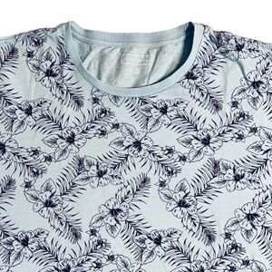 Pale blue tropical flower pattern crew neck short sleeved T-shirt -Club Room. 100% lovely soft quality cotton and in excellent condition