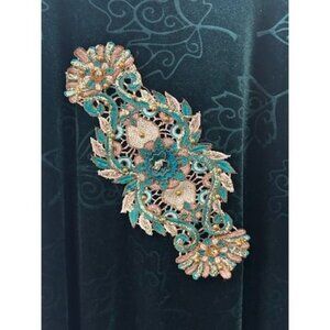 Palestinian Handmade Thobe Embroidered Dress Dark Green Velvet