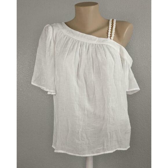 Palette Gauze Blouse One Shoulder Neckline Cutout Strap Top White Blouse Career