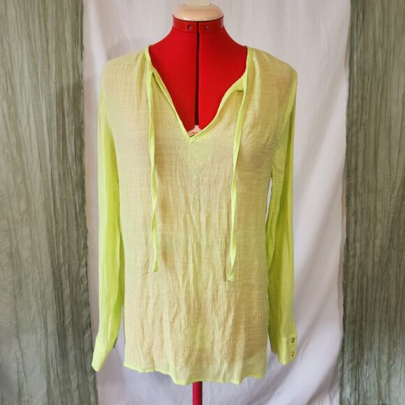 Palette neon Lime Green Sheer Long Sleeve Cover up Top Blouse Size L
