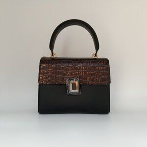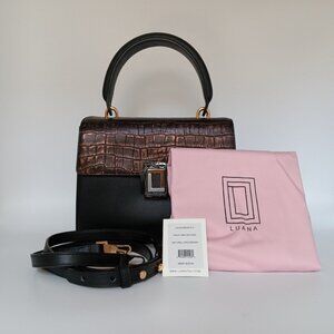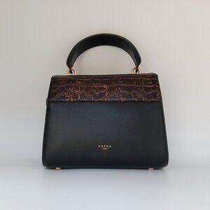 Beautiful Luana Italy Paley Mini Satchel leather handbag in color Natural Croc/Ebony.