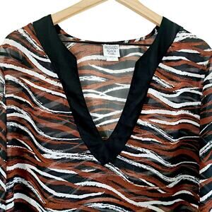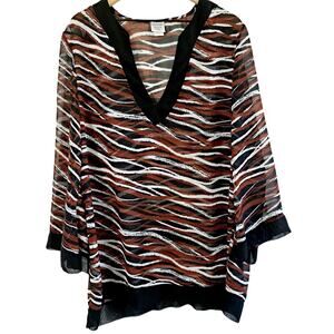 Palisades Beach Club animal print coverup/top. V-neck. Bell sleeves. Semi sheer.