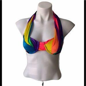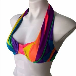 Palisades Beach Club Halter Swim Top in bright neon co,it’s.