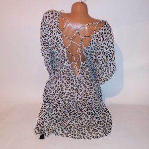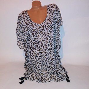 Palisades Beach Club Swim Cover Up Medium Large M/L Sheer Leopard Animal Print S
