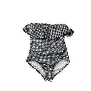 Palisades Beach Club Gingham Ruffle Strapless One Piece Swimsuit Preppy Size M
