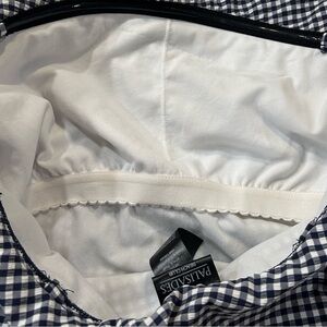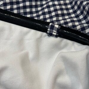 Great quality preowned swimsuit in navy blue and white gingham print. Very clean!