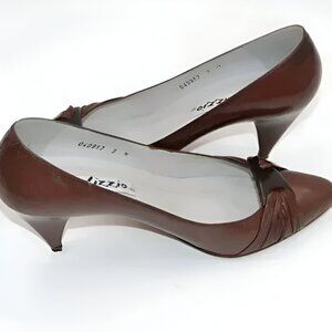 Palizzio Spanish Brown-Burgundy Leather Structured Twist Cone Pumps Heels 9