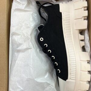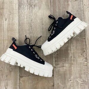 Palladium Black White Canvas Chunky Lug Sole Y2K Vegan Platform Sneakers Shoes