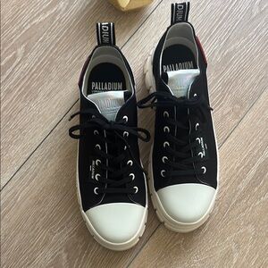 Stylish Palladium sneakers with a bold black and white look. Features a chunky sole and lace-up design. Ideal for everyday wear. Like new!