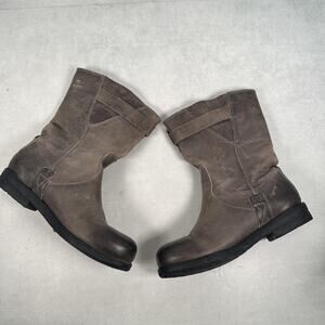 Palladium Boots Womens Size 6 Gray Leather Engineer Motorcycle Buckle Pull-On