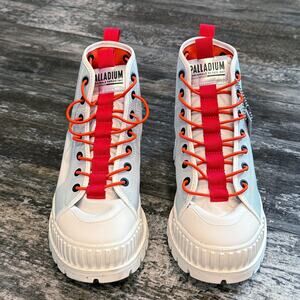 Palladium Pampa Earth Scout Boots Shoes Mens Size 7 White Red Space Hiking 77354-116