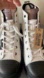 Stylish white high-top sneakers with black platforms & accents. High quality. Over $90 retail. New with box. Perfect for casual wear & festivals. Women's size 10.
