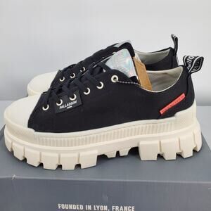 New in Box Palladium Womens 9 Revolt Lo TX Black/Marshmallow Platform Shoes 97243-016-M. The box has some damage.