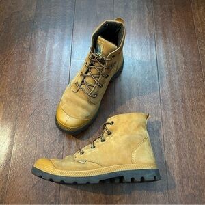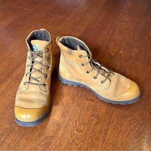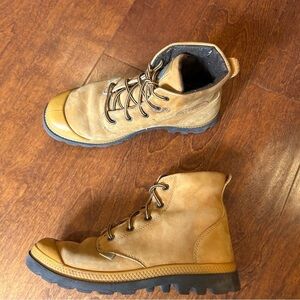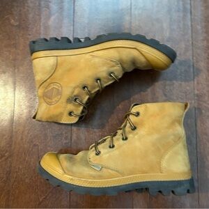 Palladium Women’s Waterproof Gold Tan Lace-Up Boots, Soft Suede Size 7.5