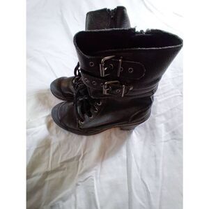 Palladium Black Leather Combat Boots Buckle Ups Size 5.5