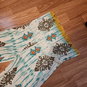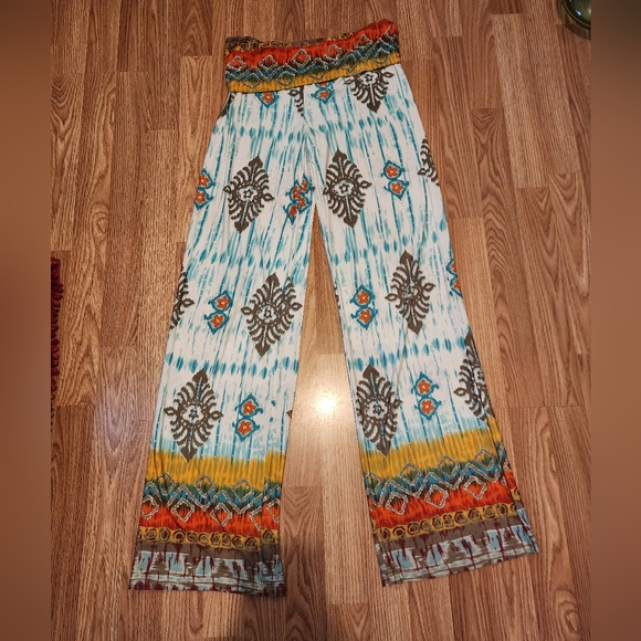 Reposhing this item I purchased from @jaimelynn2022. Unfortunately, these pants are too large for me in length. Material is like swim suit material which has stretch. Great pants for summer to use as a cover up at the pool or beach. Very comfortable and flowy. Like new! No snags or flaws.