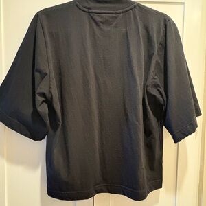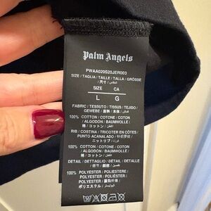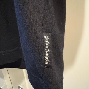Stylish boxy black mock neck t-shirt featuring a white Palm Angels tree embroidery on the chest.
