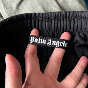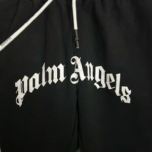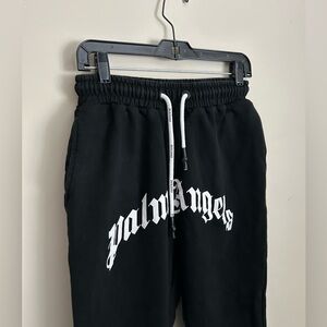 EUC pair of black Palm Angels sweatpants in a size Medium. These pants have the Palm Angels logo painted across the front. Drawstring waist. No stains or flaws!