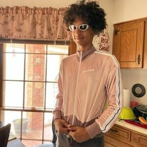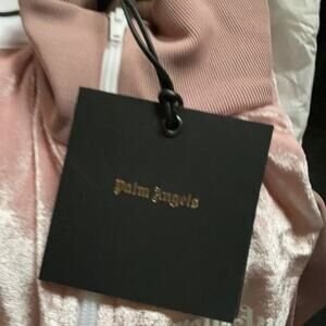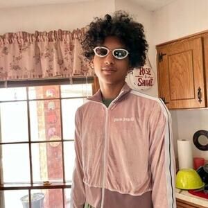 Palm Angels Chenille Cropped Zip Up Hoodie Rose