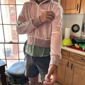 dusty rose velour relaxed zip-up hoodie finished on a soft chenille fabric.