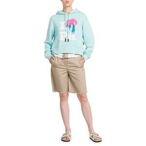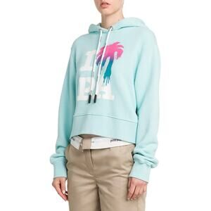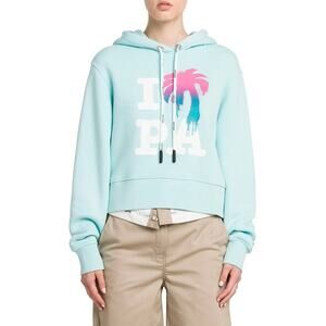 Palm Angels I ❤️ PA Aqua Blue Crop Hoodie Pink Palm Tree Graphic Pullover XS