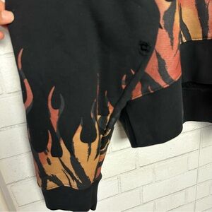 Palm Angels Hoodie Tiger Flames Print Black Fire Oversized Sweatshirt Mens XXL 2XL