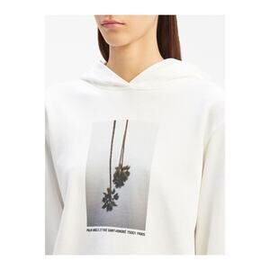 Palm Angels hoodie in off white fleece cotton with Mirage print at front, long sleeves, elasticated waistband and cuffs and tight fit. Originally purchased from Vitkac.com.
