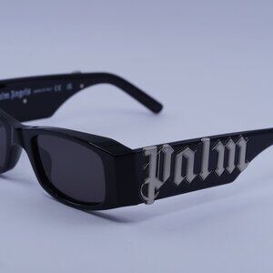 Authentic Palm Angels PERI007 ANGEL 1007 sunglasses in black frame with silver logo.
