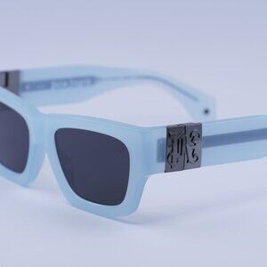 Authentic Palm Angels PERI10J MAGNOLIA 4007 sunglasses in light blue frame with ruthenium elements on the temples.