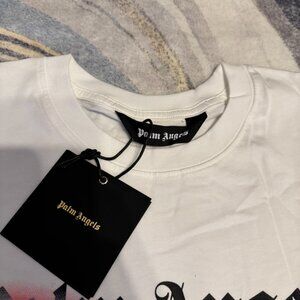 Palm Angels Pink Grafitti Drip Miami Logo White T-Shirt Size Medium or Large