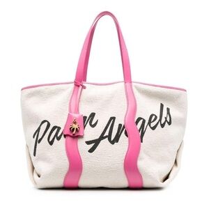 Palm Angels Pink Leather Logo Tote Bag Shoulder Carryall Large Display Model