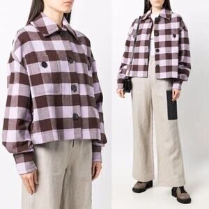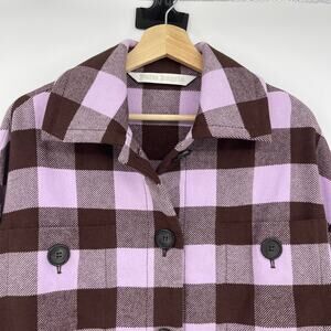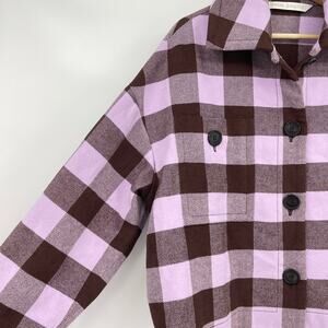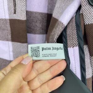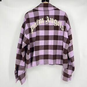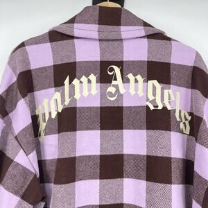 Palm Angels | Purple Brown Buffalo Check Plaid Logo Flannel Shirt Jacket 40 US L