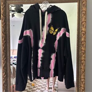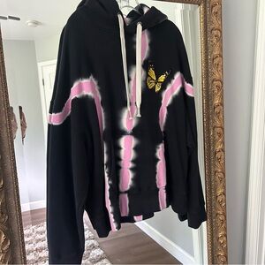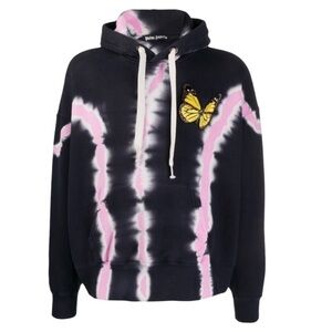 Palm Angels Unisex Black and Pink Tie-Dye Butterfly Sweatshirt Hoodie Sz XL