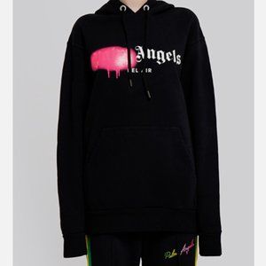 Palm Angels Unisex Pink Bel-Air Sprayed Logo Hoodie in Black sz M