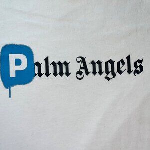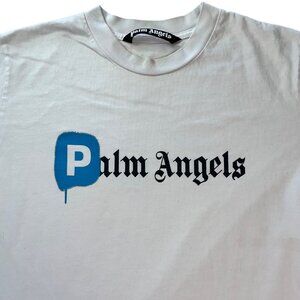 Palm Angels White T-Shirt With Blue & Black Print Short Sleeve Crew Neck Cotton