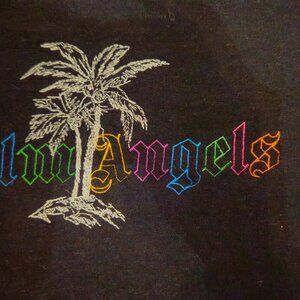 Used Palm Angels t shirt. Black base with colored embroidery. All measurements are listed.
