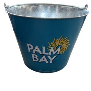 Palm Bay Alcoholic Beverage Metal Ice Bucket. Has a scratch on the side near the seam. A few other scrapes and scuffs. 7 1/4” tall.