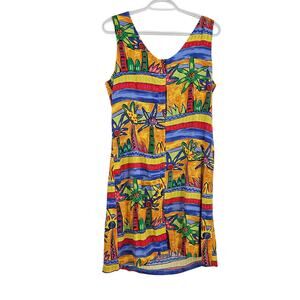 Palm Bay Dress Multicolor Tropical Print Sleeveless Hawaiian Y2K Mini Size M