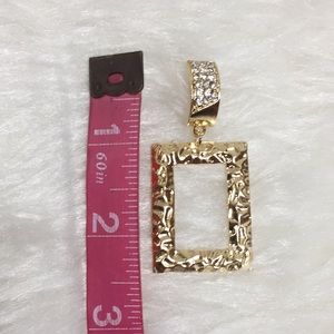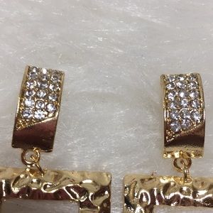 Beautiful hammered pattern design door knocker style earrings with rectangular rhinestone accent stud and pierced post.