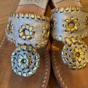 Palm Beach Sandals Gold and Silver. Made in USA Women's 7.5- GUC Like Jack Rogers but better!