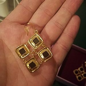 A pair of gold colored earrings consisting of four squares making a diamond shape. Beautiful! These were given to me so I dont have a lot of info, I do not think they are real gold.