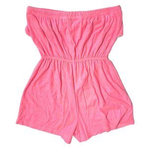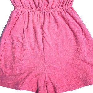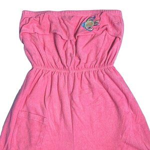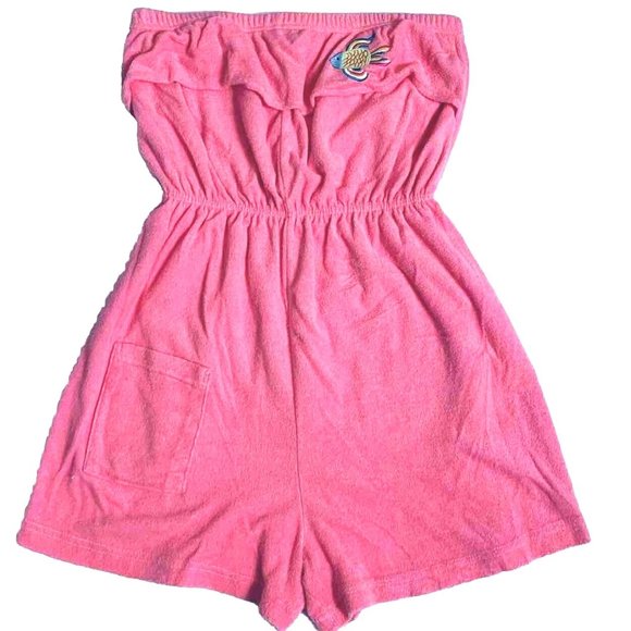 Palm Harbour 80s Playsuit Romper Sz L Tube Top Pink lip Fish Embroider Cover Up Terry Cloth