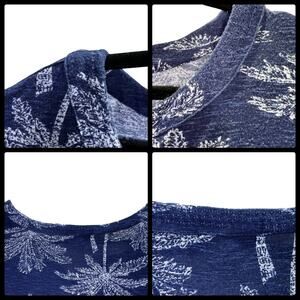 Palm Harbour Woman Knit V Neck Top Blue White Palm Trees 3/4 Sleeve Plus Size 2X