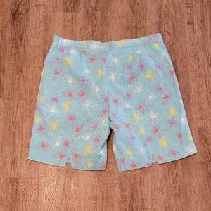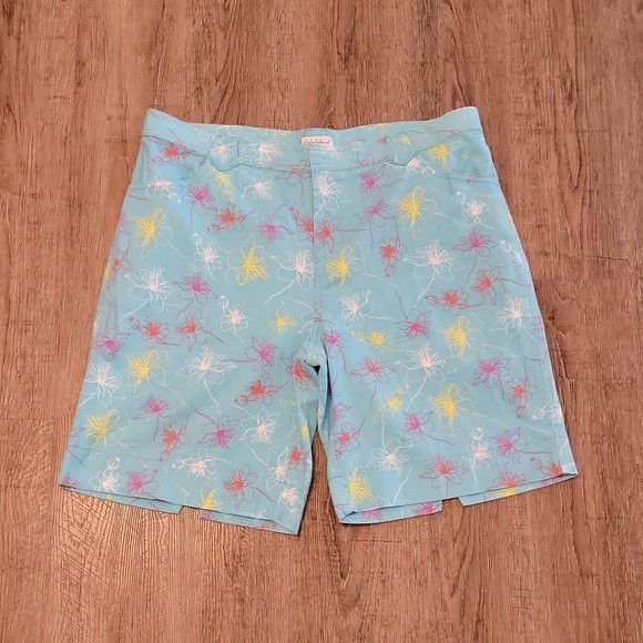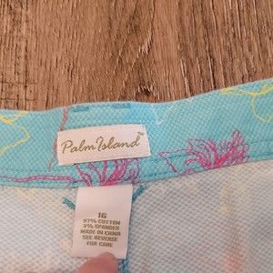 Palm Island Bermuda Shorts ~ Sz 16 ~ High Rise ~ Blue ~ Floral ~ 9" Inseam ~ 2 Front Pockets ~ 0 Back Pockets