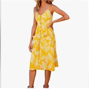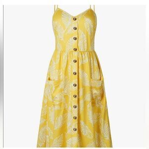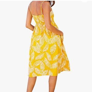 Palm Leaf Tropical Midi Dress - Yellow Boho Romantic Cottage Core