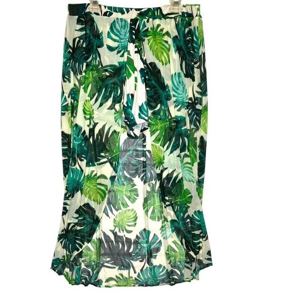 Palm Leaves Mesh Maxi Skirt Sheer Shorts Combo Beach Vacation Plus Size 3X Cover