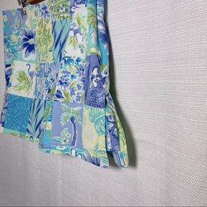 Palm Lily Skirt, Skirt-Short Mini Floral Sz6 Cotton. Comfortable and beautiful, the tag is already faded, but the skirt is in excellent condition. Patchwork pattern with flamingos and palm trees, perfect fit. See photos for details, please